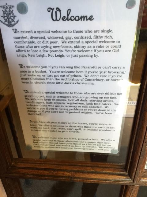 You may have seen on Facebook or elsewhere on the internet a welcome notice which apparently appeared at St Clements Church, Leigh-on-sea, Essex. Please read that, then come back here…